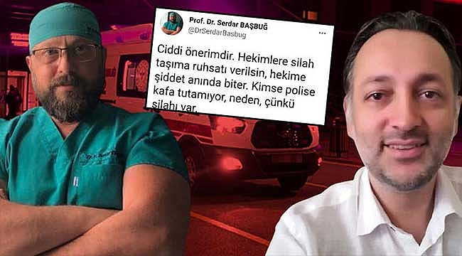 'HEKİMLERE SİLAH TAŞIMA RUHSATI VERİLSİN' PAYLAŞIMI YAPTIĞI ORTAYA ÇIKTIProf. Dr. Başbuğ'un 18 Mart'ta sağlık çalışanlarına şiddet olaylarına tepki amacıyla sosyal medya hesabından "Ciddi önerimdir. Hekimlere silah taşıma ruhsatı verilsin, hekime şiddet anında biter. Kimse polise kafa tutamıyor, neden, çünkü silahı var" paylaşımında bulunduğu ortaya çıktı.