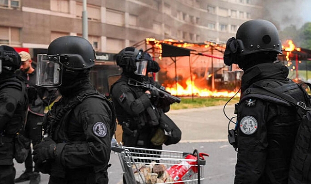 Fransa’da 27 Haziran’da trafik kontrolü sırasında 17 yaşındaki Nahel’in öldürülmesinin ardından başlayan protestolar devam ediyor. Ülke geneline yayılan protestolarda şiddet olaylarına karışanlar polis tarafından gözaltına alınıyor. Fransa İçişleri Bakanlığı, ülke genelinde 45 bin polisin şiddet olaylarına müdahale ettiğini, protestoların başlamasından bu yana ise 719 kişinin gözaltına alındığını duyurdu.İTFAİYE ERİ MÜDAHALE SIRASINDA ÖLDÜFransa İçişleri Bakanı Darmanin, gece saatlerinde protesto kaynaklı çıkan yangına müdahale sırasında 24 yaşındaki itfaiye erinin yaşamını yitirdiğini duyurdu. Darmanin, “Dün gece Saint-Denis'deki bir yeraltı otoparkında çok sayıda araçtan çıkan yangınla mücadele ederken, Paris İtfaiyesinde görevli 24 yaşındaki genç bir onbaşı, ekip arkadaşlarının çok hızlı müdahalesine rağmen hayatını kaybetti” dedi. Fransa Savunma Bakanı Sebastien Lecornu ise itfaiye erinini yaşamını yitirmesiyle ilgili soruşturma başlatıldığını duyurdu.Fransız medyası, protestoların şiddetinin azaldığını duyururken; Fransa İçişleri Bakanlığı 45 polis ve itfaiye personelinin protestolara müdahale sırasında yaralandığını bildirdi.