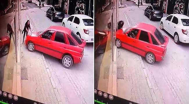 Ankara'nın Polatlı ilçesinde, kaldırımda yürüyen Gaye Nur D., sürücüsü fren yerine gaza basınca kontrolden çıkan otomobilin çarpması sonucu yaralandı. Kaza anı, güvenlik kamerasına anbean yansıdı.