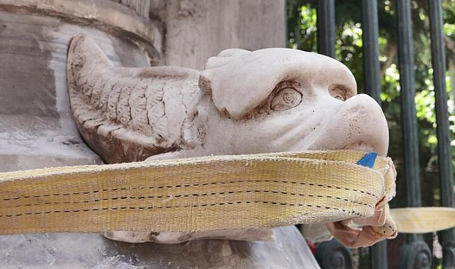 Galatasaray Lisesi kapısındaki kayıp yılan heykelinin yerine kopyası yerleştirildi