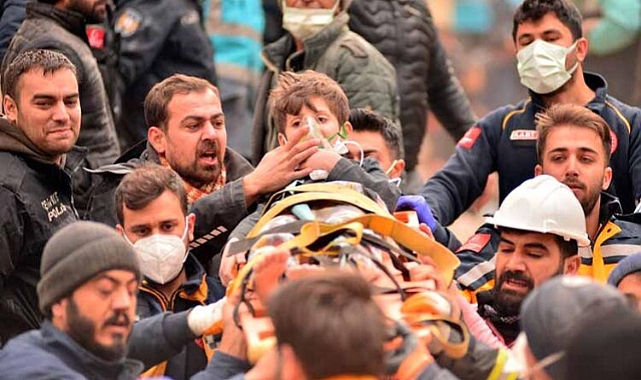 Gaziantep’te deprem nedeniyle yıkılan binanın enkazında mahsur kalan Mustafa Şirhat (22), Ela Şirhat (17) ve Ahmet El Musa (6) isimli akrabalar, arama çalışmalarının 108’inci saatinde kurtarıldı. Kurtarma çalışmaları sırasında bacağı enkaz parçalarına sıkışan Ela Şirhat ekiplerden döner istedi. Genç kıza dürüm döner getirilirken, depremzedeleri enkazın altından kurtaran ekibin lideri, AFAD görevlisi İbrahim Yıldırım, “Sözün bittiği yerdeyim, o kadar sevinçliyim ki anlatamam. Sonuna kadar buradayız. Can kurtarmaya devam edeceğiz” dedi. Kahramanmaraş’ta 6 Şubat saat 04.17’de meydana gelen 7.7 büyüklüğündeki deprem ile ardından saat 13.24’te meydana gelen 7.6 büyüklüğündeki deprem nedeniyle Gaziantep’in de aralarında bulunduğu 10 kentte çok sayıda bina yıkıldı.Binlerce kişinin ölümüne ve yaralanmasına neden olan depremde Nizip ilçesi Fatih Sultan Mehmet Mahallesi’ndeki 8 katlı, 30 daireden oluşan Furkan Apartmanı da yıkıldı. AFAD başta olmak üzere belediye ekipleri ve sivil toplum kuruluşlarının arama-kurtarma timleri enkazda çalışma başlattı. Dinleme çalışması yapan ekipleri sabah saatlerinde bir dairede beraber yaşayan Suriye uyruklu 10 kişilik akraba grubunun 3 ferdinden ses aldı.Depremzedelerin kurtarılması için çalışma başlatıldı. Bir dizi inceleme için ilçeye gelen Çevre, Şehircilik ve İklim Değişikliği Bakanı Murat Kurum da çalışmaları izledi. BACAĞI SIKIŞAN KIZ DÖNER İSTEDİ Titizlikle çalışan ekipler önce Ahmet El Musa isimli küçük çocuğu çalışmaların 108'inci saatinde enkazdan çıkardı. Sedyeyle ambulansa taşınan çocuğu babası sarılarak öptü. Ardından ise Mustafa Şirhat kurtarılarak ambulansla hastaneye kaldırıldı. Çalışmalar sırasında bayılan bir işçi de hastaneye kaldırıldı. Ela Şirhat’ın bacağının enkaz parçalarına sıkıştığını belirleyen ekipler birkaç saatlik mücadelenin ardından genç kızı sıkıştığı yerden kurtardı. Acılı genç kız, çok acıktığını belirterek çalışmalar sırasında ekiplerden döner istedi. Genç kızın istediği dürüm döneri kısa sürede tedarik eden ekipler daha sonra onu ambulansla hastaneye kaldırdı. Yaralıların sağlık durumunun iyi olduğu öğrenildi. 'SONUNA KADAR CAN KURTARMAYA DEVAM EDECEĞİZ' 3 kişiyi kurtaran ekibin lideri, AFAD görevlisi İbrahim Yıldırım, vatandaşlar tarafından alkışlarla karşılandı. Ambulansta oksijen takviyesi yapılan Yıldırım, DHA'ya açıklamalarda bulundu.Yıldırım, “Söylenecek bir şey yok o kadar mutlu, sevinçliyim ki anlatamam. Sözün bittiği yer orası. 3 tane canlı var, 3 hayat. Allahım’a çok şükür. Sonuna kadar buradayız. Can kurtarmaya devam edeceğiz” dedi.