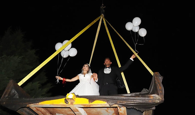 Keşan’da Asya ile vinç ve hafriyat şirketi sahibi Çağatay Saçar, dün akşam İspat Cami Mahallesi’ndeki kır bahçesinde düzenlenen düğün töreniyle hayatlarını birleştirdi. Asya ve Çağatay Saçar çifti, 60 tonluk vince bağlanan platformun üzerinde yaklaşık 30 metre yüksekliğe çıktıktan sonra davetlileri selamlayarak düğün alanına indi. Davetliler bu anları cep telefonu kameralarıyla görüntüledi. Asya Saçar, hayatında unutulmaz bir an yaşadığını belirterek, “İlginç bir tecrübe olacak. Sadece bir kez denedik. Heyecanlıyım. Heyecan verici ve hoş” dedi.Çağatay Saçar ise “Biz Keşan’da vinç ve hafriyat firmasıyız. Düğüne yeni bir tat ve hareket katmak istedik. Türkiye’de bugüne kadar hiç olmayan bir şey gerçekleştirdik” diye konuştu.