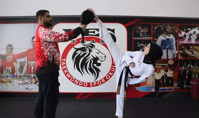 Kayseri’de 5 yıl önce ailesiyle spor salonunun önünden geçtiği sırada içerideki sporcuları görüp izlerken antrenörler tarafından fark edilerek içeri davet edilen işitme engelli Fatma Akkaya (14), başladığı tekvando sporunda bu yıl Türkiye birincisi oldu.