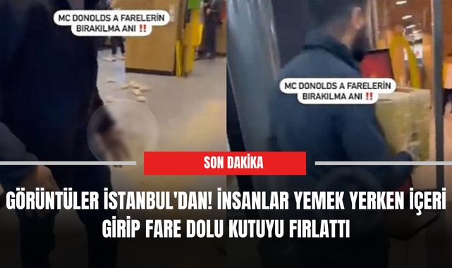 Görüntüler İstanbul'dan! İnsanlar yemek yerken içeri girip fare dolu kutuyu fırlattı