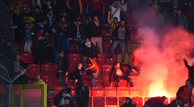 AMBULANS GÖREVLİLERİ ÇANTALARI ÇÖP KUTUSUNA SAKLAMIŞ Savcı Yılmaz'ın sevk yazısında, ambulans görevlileri A.G. ve H.K.’nın, ‘binlerce kişinin futbol izlemek, eğlenmek, hoşça vakit geçirmek’ amacıyla eşi, çocukları ve ailesiyle birlikte bulunduğu stada patlayıcı ve yanıcı maddeleri, stada girişte arama ve güvenlik önlemlerini aşmak amacıyla ambulansa gizleyerek soktukları bilgisi de yer aldı. İki şüphelinin stada ambulansla soktukları yanıcı ve patlayıcı maddeleri saat 16.36'da seyirci tuvaletindeki çöp kutusuna sakladıkları, saat 16.40'da tuvaletten birlikte ayrıldıklarına vurgu yapan savcı, D.D., K.E., E.F., H.Ç.D., M.Y. ve F.E.’nin çöp kutusuna bırakılan sis bombası, meşale, maytap, torpil ve benzeri yanıcı ve patlayıcı maddeleri tuvaletten alarak tribündeki taraftarlara dağıttıklarını belirtti. KARGAŞA YARATMAK İÇİN SÜREKLİ YER DEĞİŞTİRMİŞLER Öte yandan, S.H.’nin maçtan önce para vererek E.B.’nin iş yerinden satışı ruhsata ve izne tabi olan satın aldığı bir adet işaret fişeğini stat dışında maçtan önce Ç.K.’ya, Ç.K.’nın E.E.’ye, onun da A.B.’ye teslim ettiği belirtildi. A.B.’nin söz konusu fişeği taraftarların ‘güven içinde stada gelip gitmelerini sağlamak amacıyla kendilerine tahsis edilen otobüse gizlediği, F.E.’nin otobüse gizlenen işaret fişeğini otobüsten alarak üzerine gizlediği sevk yazısında belirtildi.Üzerinde işaret fişeği bulunan F.E.’nin deplasman seyirci girişinde taraftarların bir anda turnikelerin hücum etmesini fırsat bildiği, fişeği de elindeki pankarta sakladığı, kendisini aramak isteyen güvenliği iterek stada giriş yaptığının altı çizildi. Zanlıların tribünde kendilerine ayrılan yerlerde oturmadıkları, sürekli yer değiştirdikleri ve tribünde kargaşa yaratıp tespite elverişsiz bir ortamın oluşturmaya çalıştıkları belirtildi. EYLEME UYGUN ORTAM SAĞLANMIŞMaçın 19’uncu dakikasında Ş.P., Ö.U., Ü.T., T.G., G.A.A ve E.K.’nın kendilerine diğer şüpheliler tarafından verilen meşale ve sis bombalarını yakarak tribünde göz gözü görmez bir ortam yarattıkları, F.Ö., Y.A., N.A.D. ve F.E.'nin diğer grupla birlikte hareket edip ellerinde sis bombası ve meşale bulunduğu ve diğer şüphelilerin eylemlerini gerçekleştirmelerine uygun ortam ve kolaylık sağladıklarının da sevk yazısında ifade edildi. G.A.A., T.G. ve Ü.T.’nin kendilerine verilen maytapları yakarak Göztepe taraftarlarının bulunduğu tribüne hedef alarak fırlattıkları da belirtildi.‘İŞARET FİŞEĞİ HEDEF GÖZETİLEREK ATILMIŞ’Maçın 22’nci dakikası oynanırken, diğer şüphelilerin maçtan önce ve maç sırasında birbiri ile irtibatlı ve anlaşmalı şekilde yarattıkları kargaşa ortamı ve meşale ile sis bombalarının çıkardığı duman nedeniyle kimsenin seçilemez olduğu düşünüldüğü anda F.E.’nin üzerinde stada kaçak olarak soktuğu işaret fişeğini diğer şüphelilerin bilinçli ve organize şekilde yarattığı kargaşa ortamının ve meşale ve sis bombalarının oluşturduğu dumanlı ortamdan yararlanarak Göztepe taraftarlarının bulunduğu tribüne doğru insanların yoğun olarak bulunduğu yeri hedef gözeterek ateşlediği, işaret fişeğinin Göztepe tribününde maçı izlemekte olan müşteki Mehmet Çakır'ın yüzüne isabet ederek yaraladığına da vurgu yapıldı. Savcı Yılmaz, F.E.'nin öldürmeye elverişli ve satışı ruhsata tabi olan işaret fişeği ile önceden planlanmış ve iş bölümü yapılmış şekilde diğer şüphelilerin yardımı ve desteği sonucunda insanların yoğun olarak bulunduğu tribünü hedef alarak ateşleyip tribünde bulunan müşteki Mehmet Çakır'a isabet ettirerek üzerine atılı ‘kasten öldürmeye teşebbüs’ suçunu işlediğine kanaat getirdi. 19 ŞÜPHELİ İÇİN TUTUKLAMA TALEBİ İSTENDİSavcı Yılmaz, ifadelerin ardından işaret fişeğini atan Furkan Ersanlı'ı ‘kasten öldürmeye teşebbüs’ suçundan, 18 kişiyi ise 'kasten öldürmeye teşebbüse iştirak’ suçundan tutuklanmaları istemiyle mahkemeye sevk etti. 5 kişi hakkında ise adli kontrol kararı verilmesini talep etti. 19 ŞÜPHELİ TUTUKLANDI, 5 KİŞİ ADLİ KONTROL ŞARTIYLA SERBESTNöbetçi Sulh Ceza Hakimliği, savcının talebi doğrultusunda Furkan Ersanlı, Dinçer Demir, Kahraman Erdemir, Efe Yeşilova, Hüseyin Çelikdemir, Muhammet Emre Karaca, Anıl Gügercin, Hakan Keçiyatağı, Mert Yiyit, Serkan Holar, Çağdaş Kurt, Egehan Eygi, Anıl Bayır, Şakir Perçin, Özgür Uçak, Ümit Taş, Turgay Gülmez, Gökçen Atacan Aksoy ve Eren Karaca'nın tutuklanmasına, U.M.K, F.Ö, Y.A, N.A.D. ve F.E. ise adli kontrol şartıyla serbest bırakılmasına karar verdi.