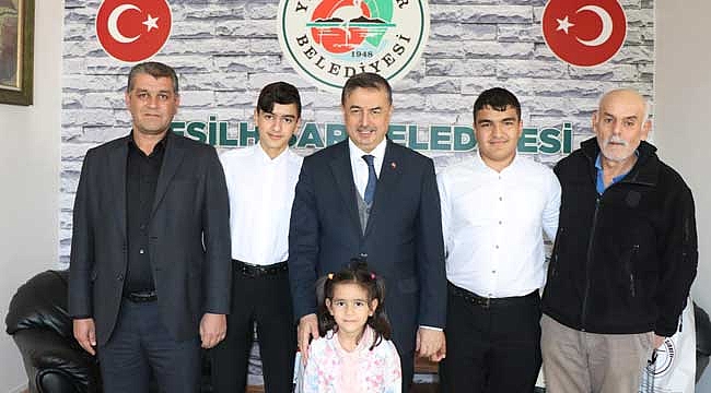Kayseri’de düzenlenen hafızlık icazet programında hafızlık belgelerini alan Yeşilhisar ilçesinin kıymetli evlatları Mustafa ve Muhammed Enes Memiş kardeşler Belediye Başkanı Halit Taşyapan’ı ziyaret etti.