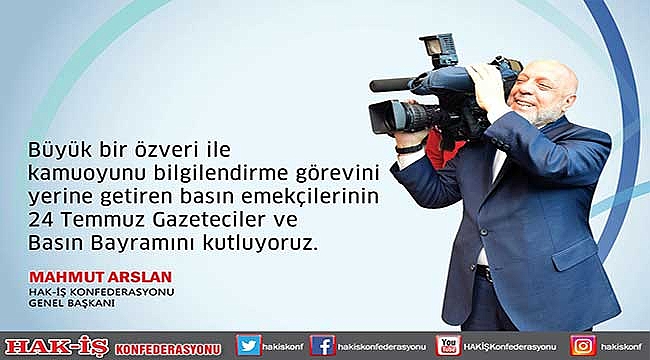 HAK-İŞ Genel Başkanı Mahmut Arslan, 24 temmuz gazeteciler ve basın bayramı nedeniyle bir mesaj yayımladı.