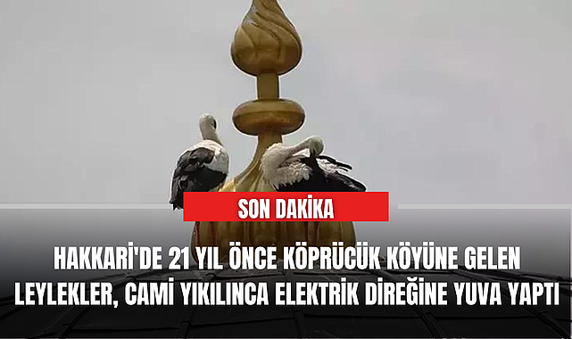Hakkari'de 21 yıl önce Köprücük köyüne gelip, cami bacasına yuva yapan 2 leylek ile yavruları, cami yıkılınca elektrik direğine yuva yaptı. Erkek leylek elektrik akımına kapılıp ölürken, anne leylek ile 2 yavrusu bu kez biten yeni caminin kubbesini yuvaya çevirdi. Köylüler, köylerinden hiç ayrılmayan leyleklere gözü gibi bakıyor.Yüksekova'ya 10 kilometre uzaklıktaki Köprücük köyündeki caminin bacasına yuva yapan, yaz-kış bölgeden ayrılmayan 2 leylek ile yavruları, geçen yıl cami yıkılınca elektrik direğine yuva yaptı. 7 ay önce erkek leylek elektrik akımına kapılıp ölürken, anne leylek ile 1 yaşına giren 2 yavrusu bu kez 5 ay önce biten yeni caminin kubbesini yuvaya çevirdi. Köylüler, ayrılmayan leyleklere gözü gibi bakıp, zaman zaman yiyecek vererek besliyor.