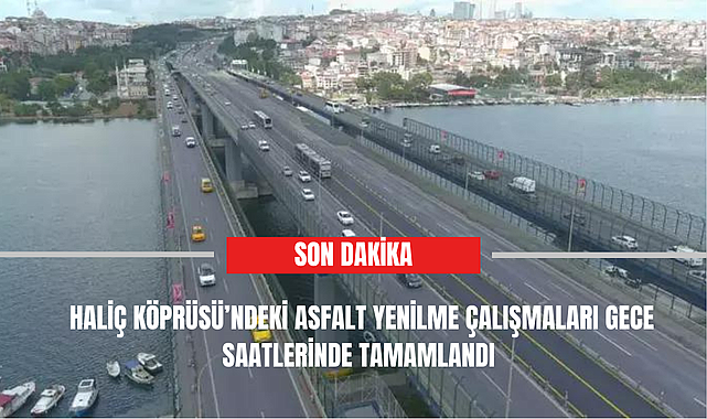 İstanbul Büyükşehir Belediyesi (İBB) tarafından 3 Temmuz gecesi başlanan Haliç Köprüsü'ndeki metrobüs yolu asfalt yenileme çalışmaları tamamlandı. Köprünün tüm şeritleri gece 01.00 itibariyle trafiğe açıldı. Çalışmalar sonrasında köprü üzerindeki akıcı trafik havadan görüntülendi.İBB Yol Bakım ve Altyapı Koordinasyon Dairesi Başkanlığı ekipleri tarafından D-100 Karayolu Haliç Köprüsü'nde 3 Temmuz gecesi başlanan asfalt yenileme çalışmaları gece 01.00 itibariyle tamamlandı. 8 Temmuz'da bitmesi planlanan çalışmalar 2 gün erken tamamlanarak Haliç Köprüsü'nün tüm şeritleri tekrar kullanıma açıldı. Çalışmalar neticesinde köprü üzerindeki metrobüs yolunda eskiyen ve sürüş konforunu etkileyen asfalt alan yenilendi.KÖPRÜNÜN TÜM ŞERİTLERİ TEKRAR TRAFİĞE AÇILDIHaliç Köprüsü'ndeki asfalt çalışmaları sırasında orta köprü Mecidiyeköy istikameti trafiğe kapatılmış, araçlar trafik işaret levhaları ve ışıklı dubalarla Haliç Köprüsü yan yola yönlendirilmişti. Çalışmalar sırasında zaman zaman oluşan trafik yoğunluğu da Bahçelievler'e kadar uzanmıştı. Çalışmaların tamamlanmasıyla birlikte Haliç Köprüsü'nün tüm şeritleri tekrar kullanıma açıldı. Açılan şeritlerle birlikte köprüdeki akıcı trafik havadan görüntülendi.