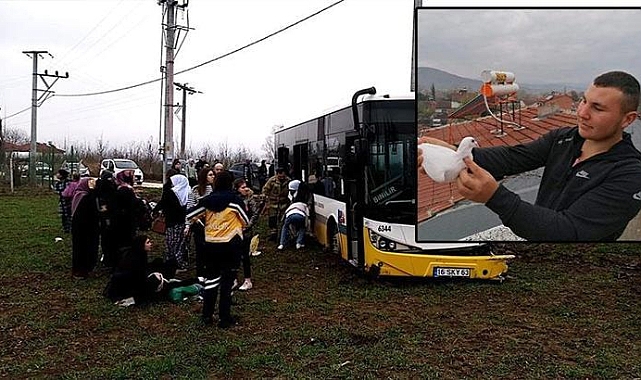 Kaza, saat 14.30 sıralarında, kırsal Kurşunlu Mahallesi yolunda meydana geldi. Kurşunlu Mahallesi'nden aldığı yolcularla ilçe merkezine seyir halinde olan Selim Dutal (56) yönetimindeki 16 SKY 63 plakalı özel halk otobüsü, karşı yönden gelen, Mert Aydemir yönetimindeki 16 ASJ 233 plakalı otomobille kafa kafaya çarpıştı. İhbarla olay yerine sağlık, itfaiye ve jandarma ekipleri sevk edildi. Otomobilde sıkışan sürücü Mert Aydemir, itfaiye ekiplerinin müdahalesiyle çıkarıldı. Yaralı sürücüler ile otobüsteki yolculardan Fatma Ş. (78), Rümeysa K. (16), Hatice K. (60), Fatma K. (39), Hasibe K. (62), İdris K. (15) ve Hatem Y. (43), olay yerindeki ilk müdahalelerinin ardından ambulanslarla kaldırıldıkları İnegöl Devlet Hastanesi ile özel hastanelerde tedaviye alındı.Müdahaleye rağmen kurtarılamayan sürücü Mert Aydemir’in, yarın vatani görevi için birliğine teslim olacağı öğrenildi. Kazayla ilgili soruşturma başlatıldı.KAZA KAMERADABursa’nın İnegöl ilçesinde, özel halk otobüsü ile otomobilin kafa kafaya çarpışması sonucu, otomobilin sürücüsü Mert Aydemir’in (20), hayatını kaybettiği, otobüs şoförü ile 7 yolcunun yaralandığı kaza, otobüsün araç içi kamerasına yansıdı. Görüntüde Mert Aydemir’in kullandığı otomobille, süratle girdiği virajı alamayarak karşı şeride geçtiği ve özel halk otobüsüne çarptığı görüldü. Otobüsün çarpışmanın şiddetiyle yoldan çıkarak, boş arsaya girdiği anlar da görüntüye yansıdı.