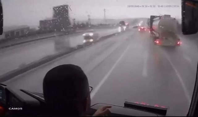 Hatalı şerit değiştirip otobüsü sıkıştıran TIR'ın sürücüsüne 1506 lira ceza; o anlar kamerada