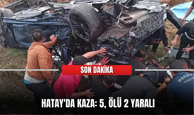 Hatay'ın Kumru ilçesinde, 2 otomobilin çarpıştığı kazada 5 kişi yaşamını yitirdi, 2 kişi de yaralandı.