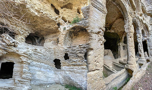 Kahramanmaraş merkezli 10 ili etkileyen 7.7 ve 7.6 büyüklüğündeki depremlerde en çok yıkım ve can kaybının yaşandığı yerlerden biri de Hatay oldu.'Medeniyetler şehri' olarak bilinen kentte birçok binanın yanı sıra tarihi inanç merkezlerinin birçoğu, depremde yerle bir oldu.Yıkılan cami, sinagog ve kilise gibi binaların aksine bazı tarihi yapılar, büyük depremde hasar görmedi.Samandağ ilçesinde bulunan ve yaklaşık 2 bin yıl önce Roma döneminde yapılan Titus Tüneli, yıkıcı depremde ayakta kaldı.Dönemin Roma İmparatoru Vespasian'ın dağdan gelen suları engellemek için inşa ettirdiği tünel, 'elle yapılan dünyanın en büyük tüneli' olarak biliniyor.7 metre yüksekliğinde, 1380 metre uzunluğunda inşa edilen tünelin, esirler tarafından çekiç kullanılarak yapıldığı belirtiliyor. SÜTUNLAR MAĞARAYI TAŞIYOR Tünel ile aynı dönemde, tamamı kayanın içine oyularak yapılan Beşikli Mağara da hasar görmeyen yapılardan oldu. Kaya mezarların bulunduğu mağaranın yer aldığı alan, eski çağlarda 'ölüler şehri' olarak adlandırılırken, girişinde de sütunlar bulunuyor.Binlerce yıldır ayakta duran sütunlar, mağarayı taşıyor. Birçok felaketi geride bırakan tarihi alanlar, 6 Şubat'ta kenti vuran ve binlerce binanın yıkılmasına neden olan depremlerde hasar almadı.