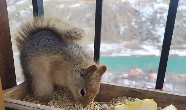 Erzincan’ın Kemaliye ilçesinde ağır geçen kış şartları, yaban hayvanlarını da zor durumda bıraktı. Gençağa Mahallesi’nde oturan Mustafa Ayhan (64), her gün evinin camına gelen sincabı besleyerek onunla özel bir bağ kurdu.