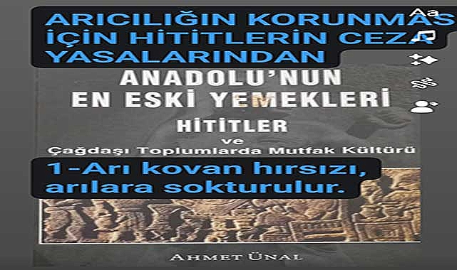 arıcılık Anadolu'da çok yaygındı ve Hitit kanunlarına kadar girmişti. Kanunların 91-92 maddeleri, bal ve arı kovanı çalan hırsızlara verilecek cezalarla ilgilidir. Kovanların boş veya dolu olmasına göre ayarlanan cezalar 5-6 sekel, yani 40 ile 50 gr gümüş arasında değişiyordu. Arı kovan hırsızı, işlenen suçla verilecek ceza arasındaki benzerlik