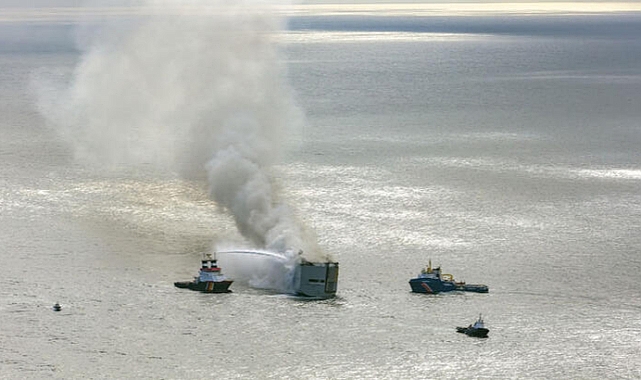 Hollanda Sahil Güvenliği tarafından yapılan açıklamada, yangının devam ettiği Panama bandıralı Fremantle Highway’in, rüzgar ve akıntı nedeniyle sürüklendiği ve şu anda Ameland Adası’nın yakınında bulunan Terschelling’in Adası’nın 16 kilometre kuzeyinde bulunduğu belirtildi. Kurtarma gemisi Hunter’ın halen gemiyle çekme bağlantısına sahip olduğu ifade edilirken, geminin trafik şeritlerinin dışında tutulduğu ve deniz trafiğinin sekteye uğramadığı belirtildi.Açıklamada, “Yangın gemide hala devam ediyor ve gemiden dumanlar yükseliyor. Bu ekiplerin gemiye çıkmasına engel oluyor. Gemi artık soğutulmuyor, çünkü gemiye gereksiz miktarda su alınması engellenmelidir. Bu, geminin dengesini tehlikeye atar. Bu daha önce yapıldı çünkü yangın o zamanlar daha yoğundu. Acil durum römorkörü Guardian'daki bir kurtarma ekibi durumu izliyor. Bir kurtarma planı için bilgi topluyorlar. Sahil Güvenlik uçağı da havadan görüntü sağlıyor” denildi.Ayrıca, yangının çıkış nedeninin ve hayatını kaybeden 1 mürettebatın ölüm nedeninin ise henüz belirlenmediği belirtildi. NE OLDU?Dün Hollanda Sahil Güvenliği, ülkenin Ameland Adası’nın 27 kilometre açıklarında seyreden Panama bandıralı Fremantle Highway kargo gemisinde yangın çıktığına dair gece yarısı civarında ihbar aldı. Çeşitli yelkenli birimler ve Deniz Olaylarına Müdahale Grubu (MIRG) alarma geçirildi. Yangını söndürmeye çalışan ancak başarılı olamayan 23 mürettebatın tamamı helikopter ve can kurtarma botlarıyla tahliye edildi. 1 Mürettebat ise hayatını kaybetti ve birkaç kişi de yaralandı. Geminin sürüklenmesini önlemek üzere kurtarma gemisi ‘Hunter’ın gemiye acil durum çekme bağlantısı kurdu.Ayrıca gemilerin hareketleri ve limanlardaki mevcut konumları hakkında gerçek zamanlı bilgi sağlayan marinetraffic sitesinde yer alan bilgilere göre, dün Almanya’nın Bremerhaven şehrinden ayrılan gemi Mısır’ın Port Said şehrine doğru seyrediyordu.