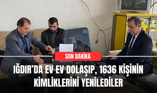 Iğdır'da çipli kimlik kartı almak için nüfus müdürlüklerine gidemeyen hasta, yaşlı ve engellilerin hizmet ayaklarına götürüldü. Iğdır Nüfus ve Vatandaşlık İşleri Müdürlüğü'nün oluşturduğu ekip, bin 636 kişinin evine giderek kimliklerini yeniledi. Görevliler, cezaevinde kalan hükümlülerden 245'inin de başvurusunu aldı. Adrese Dayalı Nüfus Kayıt Sistemi'ne göre (ADNKS) nüfusu 209 bin 738 olan Iğdır'da 199 bin 182 kişi çipli nüfus cüzdanına kavuştu.