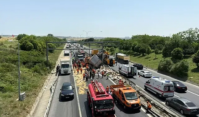 Büyükçekmece'de TEM Otoyolu'nda ip yüklü kamyon, yolda çalışma yapan başka bir kamyona çarptı. Kazada iki kamyon şoförü de yaralandı. Kaza nedeniyle bölgede yoğun trafik oluştu.