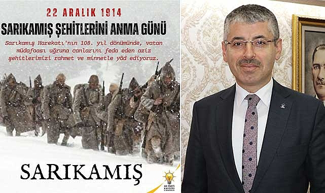 İl Başkanı Çopuroğlu, sosyal medya hesabından yaptığı paylaşımda, “Sarıkamış Harekatı'nın 108. yıl dönümünde, vatan müdafaası uğruna canlarını feda eden şanlı ecdadımızı, aziz şehitlerimizi rahmet ve minnetle yâd ediyoruz” ifadelerini kullandı.
