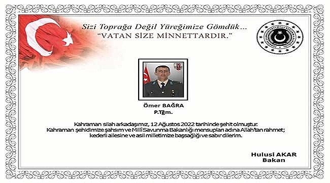 AK Parti Kayseri İl Başkanlığının sosyal medya hesabından yapılan paylaşımda, “Pençe-Kilit Operasyonu bölgesinde görev yapan Piyade Teğmen Ömer Bağra, teröristler tarafından açılan taciz ateşi sonucu şehit oldu. Kahraman askerimize Allah'tan rahmet milletimize başsağlığı ve sabır diliyoruz” denildi.