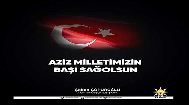 Ak Parti Kayseri İl Başkanı Şaban Çopuroğlu, Diyarbakır-Lice’de devam eden Eren Abluka-18 operasyonunda çıkan çatışmada şehit olan askerlerimiz için başsağlığı mesajı yayınladı.
