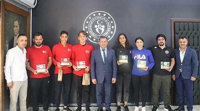 Gençlik ve Spor İl Müdürü Ali İhsan Kabakcı, yüzme branşında büyük başarılara imza atan milli sporcuları makamında kabul etti.