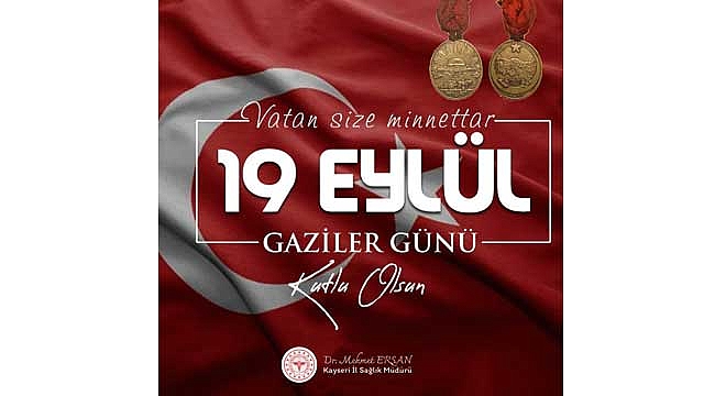 Kayseri İl Sağlık Müdürü Dr. Mehmet Erşan, 19 eylül gaziler günü dolayısıyla bir mesaj yayımladı.