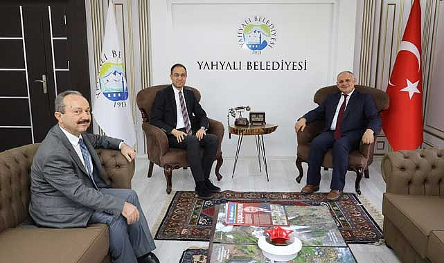Kayseri İl Sağlık Müdürü Dr. Mehmet Erşan, Kamu Hastaneleri Hizmetleri Başkanı Dr. Ahmet Özyalçın ile birlikte Yahyalı Belediye Başkanı Esat Öztürk'ü makamında ziyaret etti.