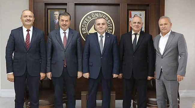 Yeşilhisar Belediye Başkanı Halit Taşyapan, ilçe belediye başkanları ile birlikte Erciyes Üniversitesi Rektörlüğü görevine başlayan Prof. Dr. Fatih Altun’u makamında ziyaret ederek hayırlı olsun dileklerinde bulundu.