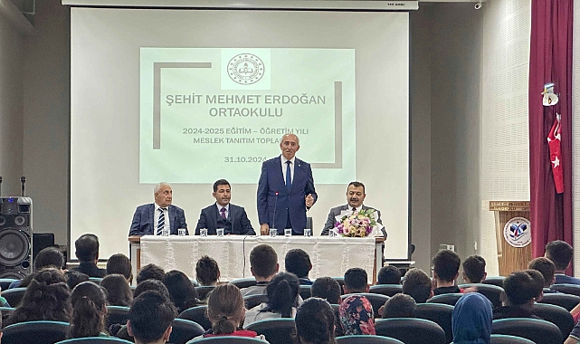 Meslek Tanıtım Toplantılarının ilk etabı Şehit Mehmet Erdoğan Ortaokulu’nda düzenlendi. Toplantıya KESOB Başkanı Şeyhi Odakır, Lokantacılar ve Pastacılar Odası Başkanı Altan Aydemir, Sıhhi Tesisatçılar Odası Başkanı Mehmet Faruk Vural, Kocasinan İlçe Milli Eğitim Müdürü Erkan Çiçek, okul müdürü Ali Ulaş ile öğretmenler ve 8. sınıf öğrencileri katıldı.