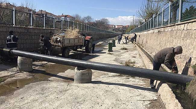 İncesu Belediyesi, ilçede bulunan çayda temizlik çalışmalarına devam etti.