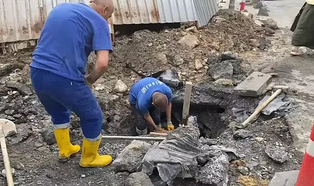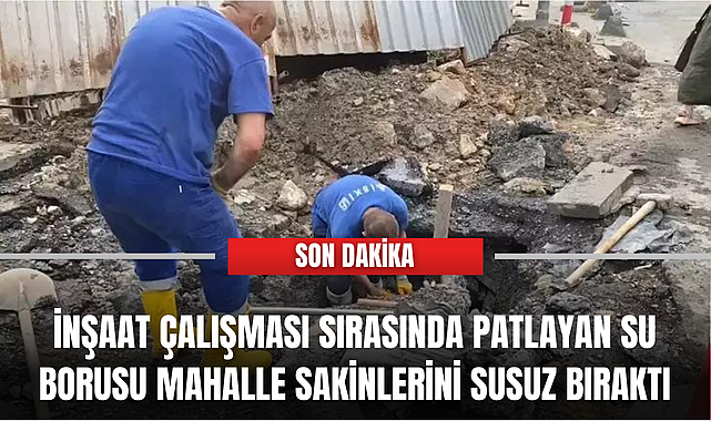 İnşaat çalışması sırasında patlayan su borusu mahalle sakinlerini susuz bıraktı