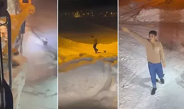Muş'un Hasköy ilçesi Karakütük köyünde, yol açma çalışması yapan iş makinesi operatörü, bir çocuğun isteğini kırmayıp evlerinin önünü kardan temizledi. O anlar, cep telefonu kamerasıyla kaydedildi.