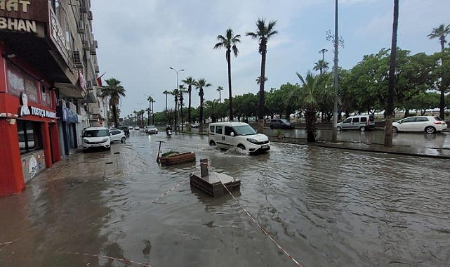 Hatay'ın İskenderun ilçesinde sağanak nedeniyle yollar göle döndü, bazı ev ve iş yerlerini su bastı. Depremden bu yana defalarca su altında kalan Atatürk Bulvarı ve Anıt Alanı'na yeniden su birikti.