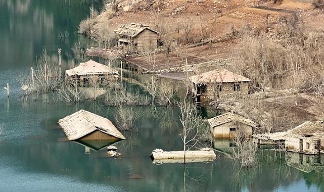 Isparta'nın Sütçüler ilçesinde baraj sularının çekilmesiyle gün yüzüne çıkan Darıbükü köyündeki taş evler, foto safari ve doğa yürüyüşü yapanların ilgi odağı oldu. Elektrik nakil hatları, cami, evlerin çatılarının yüzeyde kaldığı 'batık köy', çevresindeki ağaçların sonbahar renkleriyle seyirlik görüntü oluşturdu.