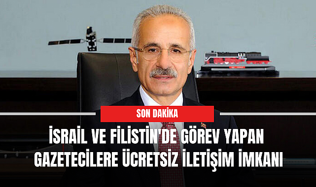 Ulaştırma ve Altyapı Bakanı Abdulkadir Uraloğlu, İsrail ve Filistin'deki gelişmeleri takip etmek için bölgeye giden gazetecilere ücretsiz dakika, kısa mesaj ve sınırsız internet ile uluslararası dolaşım hakkı sağlandığını açıkladı.