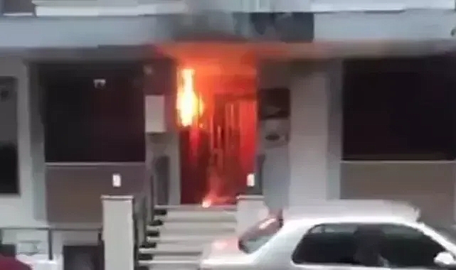 Avcılar'da, bir binanın girişindeki elektrik panosunda yangın çıktı. Yangın sırasında meydana gelen patlamalar, cep telefonu kamerasına yansıdı.