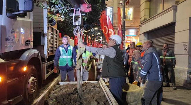 150 ağacın ekipler tarafından çıkarılmasının ardından 90 beton saksı da vinç yardımıyla kaldırılacak.Ağaçların daha sonra parklara dikileceği öğrenildi.Beton saksıların kaldırılma çalışmaları sırasında İstiklal Caddesi'nin saat 22.00'den itibaren yaya trafiğine de kapatılacağı belirtildi.