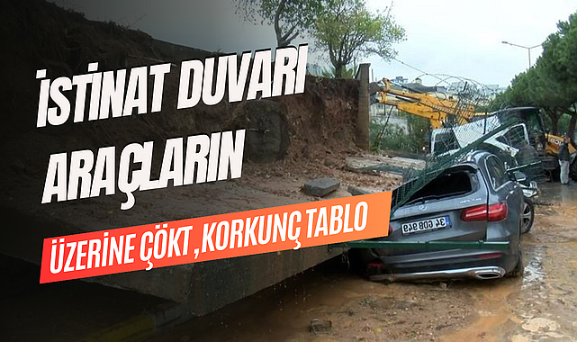 İstinat duvarı araçların üzerine çöktü, korkunç tablo