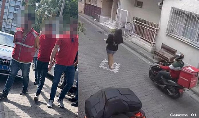 Çiçek Mahallesi 1637/16 Sokak’ta dün saat 09.00 sıralarında evinden çıkıp kucağındaki çocuk ile sokakta yürüyen E.Ç., arkadan yaklaşan motosikletinin plakası kapalı ve başında kask bulunan kuryenin fiziksel tacizine uğradı. Kurye hızla bölgeden uzaklaşırken, E.Ç. ise Bayraklı İlçe Emniyet Müdürlüğü'ne giderek şikayetçi oldu. Kurye, bu kez de saat 12.00 sıralarında Tepekule Mahallesi 2083/1 Sokak’ta yürüyen S.K.'ye tacizde bulundu. S.K. de polise gidip, şikayette bulundu.Şikayetler üzerine Bayraklı İlçe Emniyet Müdürlüğü Suç Önleme ve Soruşturma Büro Amirliği ekipleri, şüphelinin yakalanması için çalışma başlattı. Her iki olayın yaşandığı bölgede güvenlik kamerası kayıtlarını inceleyen polis ekipleri, şüphelinin motosikletinin plakasının pembe bir bez parçasıyla kapatıldığını saptadı. Ayrıca, tacMESLEKTAŞLAR TARAFINDAN DARBEDİLDİSoruşturmayı yürüten polis merkezine götürülmek üzere İlçe Emniyet Müdürlüğü’nden çıkarılan T.C., meslektaşlarının saldırısına uğradı. T.C.’yi darbeden motokuryeler, meslektaşları tarafından uzaklaştırıldı. O anlar kameraya yansıdı.iz olayını öğrenen bölgedeki motokuryeler, motosikletin üzerindeki bir korna olduğunu fark etti. Ekipler, meslektaşlarının ifadelerinden de yola çıkarak şüphelinin T.C. olduğunu belirledi. Meslektaşları tarafından çağırılan T.C., polis tarafından yakalandı.Cinsel saldırı ve hayasızca hareketler suçlarından 4 kaydı olduğu belirlenen T.C.'nin, taciz anları ise güvenlik kamerasına yansıdı.