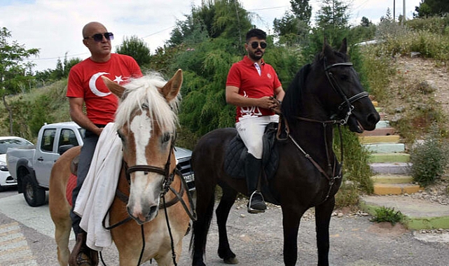 İzmir'in Bornova ilçesinde at eğitmeni Faruk Ceren (47) ile arkadaşı Cihan Saha (24), at üstünde oy kullanmaya geldi.