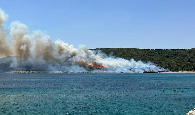 İzmir'in Urla ilçesinde makilikte yangın çıktı. Ekipler, alevlere havadan ve karadan müdahale ediyor.