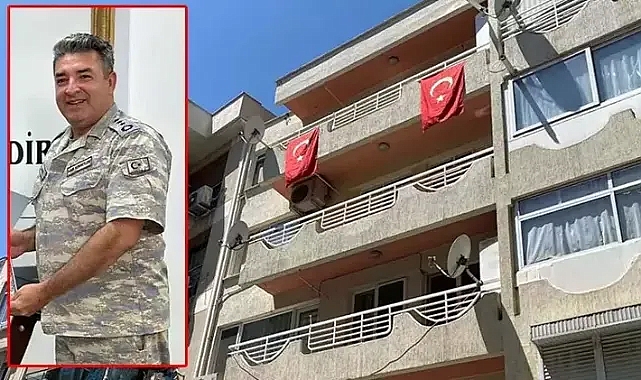 Libya'da geçirdiği kalp krizi sonucu şehit olan Hava Piyade Albay İsmail Haldun Maden'in İzmir'deki babaevine Türk bayrakları asıldı.