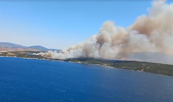 Aliağa'nın Çaltıdere Mahallesi'ndeki ormanda, saat 13.30 sıralarında yangın çıktı. Dumanı görenler, orman ve jandarma ekiplerine bildirdi. İhbarla bölgeye ekipler sevk edildi. Yangına, İzmir Orman Bölge Müdürlüğü'ne ait 6 helikopter ve 4 uçak havadan, 18 arazöz, 5 dozer, 4 su ikmal aracıyla karadan müdahale ediliyor.Menderes ilçesi Oğlananası Mahallesi'ndeki ormanda ise saat 14.00 sıralarında yangın çıktı. 15 dakika içinde ilk müdahale yapılan yangına 5 helikopter, 3 uçak ile havadan 14 arazöz, 4 su ikmal aracı ve 4 dozer ile karadan müdahalede bulunuluyor.