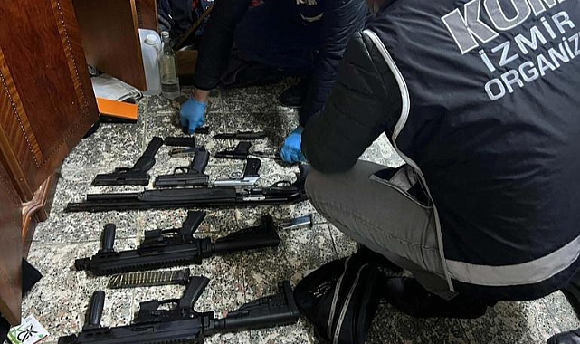 Bakan Ali Yerlikaya, sosyal medya hesabından yaptığı açıklamada, Emniyet Genel Müdürlüğü Kaçakçılık ve Organize Suçlarla Mücadele Başkanlığı koordinesinde; İzmir İl Emniyet Müdürlüğü Organize Suçlarla Mücadele Şube Müdürlüğü'nün Tahsim Aktaş ve Murat Hanaylıoğlu liderliğindeki 2 ayrı organize suç örgütüne operasyon düzenlediğini ve 25 şüphelinin yakalandığını belirterek, "İzmir merkezli Mersin ve Van'da düzenlenen operasyonlarda, organize suç örgütü üyesi şüphelilerin; suç işlemek amacıyla örgüt kurmak, eğlence mekanlarını cebir ve tehdit kullanarak ele geçirmeye çalıştıkları, esnaflara ait iş yerlerini kurşunladıkları, silahlı tehdit ile mağdur şahıslara zorla senet imzalattırdıkları, 3'üncü şahıslar adına para tahsilatı yaptıkları, silah ticareti yaptıkları, kasten yaralama, kişiyi hürriyetinden yoksun kılma, genel güvenliğin kasten tehlikeye sokulması ve 6136 sayılı kanuna muhalefet suçlarını işledikleri tespit edildi" dedi. Bakan Yerlikaya, "Operasyonlar sonucu 16 adet ruhsatsız tabanca, 2 adet tam otomatik uzun namlulu silah, 10 adet tüfek, çok sayıda fişek, tüfek kartuşu ve muhtelif miktarda uyuşturucu maddeye el konuldu. İzmir Başsavcılığımızı ve operasyonları gerçekleştiren kahraman polislerimizi tebrik ediyorum. Allah ayağınıza taş değdirmesin. Aziz milletimizin bilmesini isterim ki hangi büyüklükte olursa olsun, ailelerimizin huzurunu kaçıran organize suç örgütlerine, çetelere milletimizin duası ve desteğiyle nefes aldırmayacağız" ifadelerini kullandı. OPERASYONUN DETAYLARI ORTAYA ÇIKTIİçişleri Bakanı Ali Yerlikaya'nın duyurduğu 'Mahzen-13' operasyonlarına ilişkin detaylar ortaya çıktı. İzmir Cumhuriyet Başsavcılığı koordinesindeki Organize Suçlarla Mücadele Şube Müdürlüğü ve İstihbarat Şube Müdürlüğü ekipleri, bu sabah 'Mahzen 13' operasyonu kapsamında 2 ayrı suç örgütüne yönelik operasyon gerçekleştirdi. Suç örgütlerinin 'suç işlemek amacıyla örgüt kurmak, yönetmek ve üye olmak', 'nitelikli yağma', 'kasten öldürmeye teşebbüs', 'kasten yaralama', 'silahlı tehdit', 'genel güvenliğin kasten tehlikeye sokulması', 'mala zarar verme' ve 6136 Sayılı Ateşli Silahlar ve Bıçaklar ile Diğer Aletler Hakkında Kanun'a muhalefet' suçlarını işlediği belirtildi. 18 ŞÜPHELİDEN 15'İ YAKALANDIİlk olarak Konak ilçesi başta olmak üzere Bayraklı, Bornova, Buca, Narlıdere, Torbalı ve Urla ilçelerinde faaliyet gösteren ve örgüt liderliğini Murat Hanaylıoğlu'nun yaptığı suç örgütüne yönelik saat 06.30'da operasyon düzenlendi. 76 ekip, 163 personel ve özel harekat timlerinin katılımıyla düzenlenen helikopter destekli operasyonda 21 ev, 2 iş yeri ve 3 araçta arama yapıldı. Hakkında gözaltı kararı bulunan 18 şüpheliden 15'i yakalandı. 3 şüpheliyi yakalama çalışmalarının sürdüğü bildirildi. BUCA MERKEZLİ ÖRGÜTÜNE BASKINŞafak vakti bir diğer operasyon da Buca ilçesi başta olmak üzere Bayraklı, Bornova, Konak ve Narlıdere ilçelerinde faaliyet gösteren ve liderliğini Tahsim Aktaş'ın yaptığı suç örgütüne yönelik gerçekleştirildi. 63 ekip, 135 personel ve özel harekat timlerinin katılımıyla düzenlenen helikopter destekli operasyonda 19 ev, 3 iş yeri ve 4 araç arandı. 13 şüpheliden 10'u yakalanıp, gözaltına alındı. Firari 3 şüpheliyi yakalama çalışmaları sürüyor.Her iki operasyonda şüphelilere ait ev ve araçlardaki aramalarda 2 otomatik tabanca, 10 tüfek,16 tabanca, 75 fişek, 43 kartuş, 5 senet, bir miktar uyuşturucu olduğu değerlendirilen madde ve basın ve emniyet gibi çok sayıda farklı kurumlara ait sahte kimlik kartları ele geçirildi. Gözaltına alınan toplam 25 şüphelinin polisteki işlemlerinin sürdüğü bildirildi.