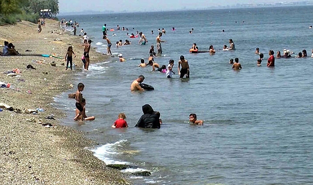 İzmirliler sıcakta denize girdi