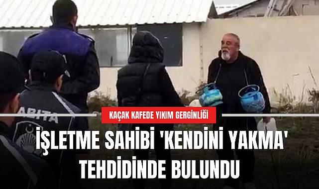 Sakarya'nın Karasu ilçesinde, plajdaki kaçak kafenin sahibi Temel Can, yıkım için gelen ekipleri, üzerine tiner döküp yakmakla tehdit etti. Can'ın ikna edilmesinin ardından kaçak yapı iş makineleriyle yıkıldı.