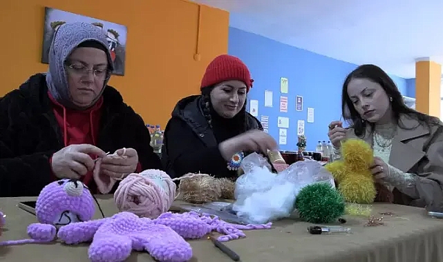 Kadın Varsa Çözüm Var Derneği Başkanı Funda Çuvalcı, "Derneğimizde 4 yıldır faaliyetlerde bulunuyoruz. Burası bizim hem üretim hem de satış yapılan alanımız. Yomra Belediyesi tarafından bize tahsis edilmiş bir yer. Buradaki kadınlar örgüden tutun hamur işine, reçeller, sirkeler, dokumalarla ve birçok el becerileriyle tezgahlardaki yerlerini alıyorlar. Sosyal medyadan bir duyuru yaptım. Dernek üyelerimizin dışında zaman zaman aramıza yeni insanlar da katıldı. Biz sürekli sosyal sorumluluk projeleri yapıyoruz. Oturup konuşurken de bayramın gelişi ve ramazan ayının samimiyetiyle beraber çocukları mutlu etmek adına ayıcıklar örmeye karar verdik. Bayramda hastanede yatan çocuklarımıza birer hediye vermek istedik. Elimizdeki iplerle sevimli ayıcıklar örmeye başladık. Yanına boya kalemi ve kitabı ekleyerek çocuklara hediye edeceğiz. Aramızda muhasebeci de var, öğretmen olan da var" dedi.