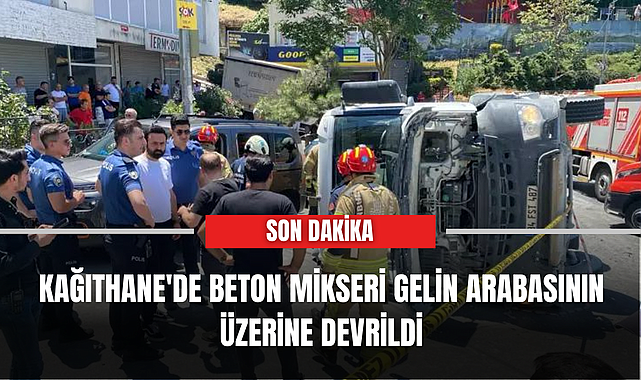 Kağıthane'de beton mikseri gelin arabasının üzerine devrildi