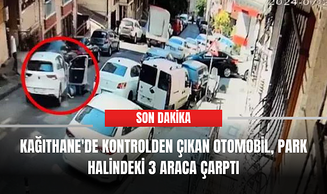 Kağıthane'de kontrolden çıkan otomobil, park halindeki 3 araca çarptı